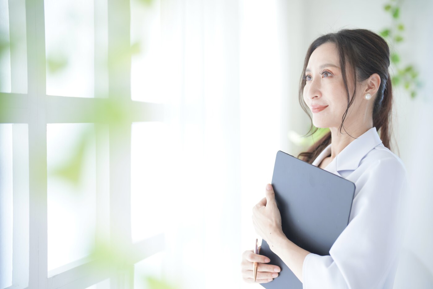 サロンにお勤めの様子をご自身のイメージをメインに撮影。午前中の清々しい自然光で撮りました。